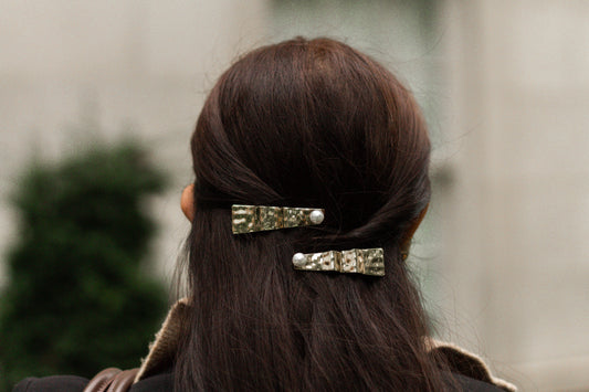 2 pc Gold Dented Hair Clip with Pearl Detail