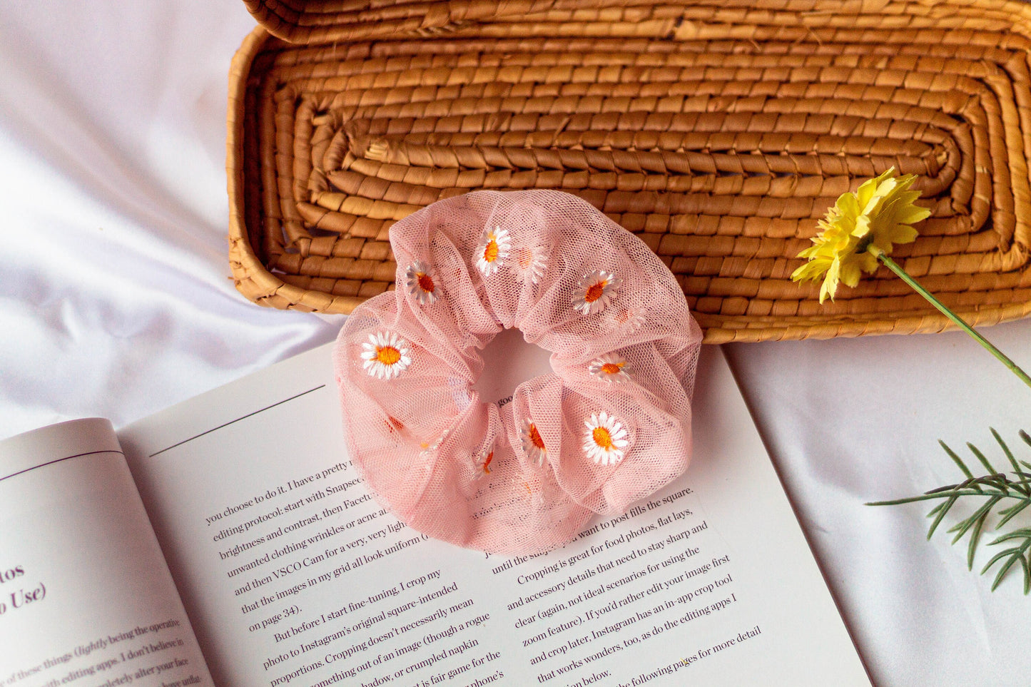 Embroidered Tulle Daisy Scrunchies